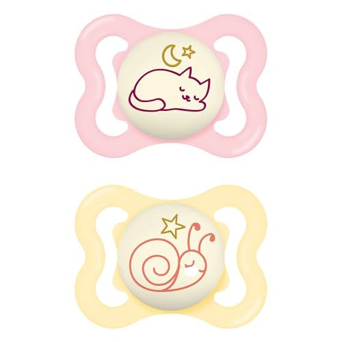 MAM | Supreme Night napp 6+ månader (2 stycken) slumpmässigt färgval – lysande silikon napp – perfekt babynapp för god munutveckling