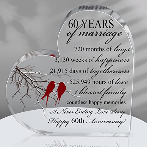 År av äktenskap gåva bröllopsdag hjärta äktenskap minnessak dekoration gåva för par förälder kvinnor mamma man fru (60:e)