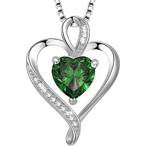 LAVUMO Halsband för Dam Sterling Silver Hjärta Hänge Halsband Rose Guld Cubic Zirconia Smycken Presenter till Flickvän Fru Mamma Hennes Födelsedag Jubileum Jul Mors Dag (Silver-05-maj)