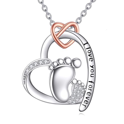 VONALA mor till hans halsband 925 sterlingsilver fotavtryck hjärta halsband graviditet gåvor till ny mamma moderskap smycken gåvor för kvinnor, Sterlingsilver