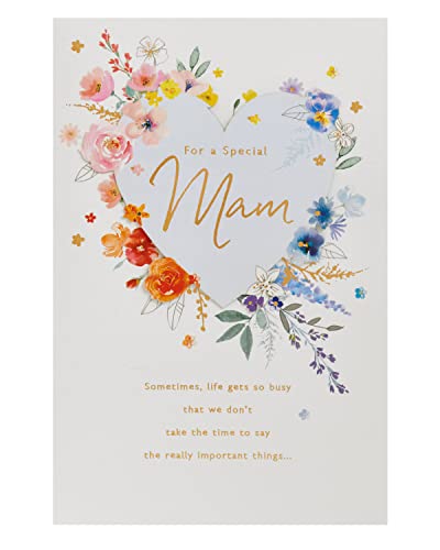 Brittiska hälsningar | födelsedagskort för mamma | grattis på födelsedagen gåvor | henne, flickor, kvinnor | söt design med hjärta med akvarellblommor | med kuvert | 155 x 235 mm