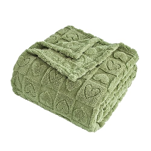 FY FIBER HOUSE Flanell överkastfiltar med hjärta rutiga, mjuka varma filtar för älskare mamma far presenter, tvättbar lätt luddig filt för soffa soffa säng kontor alla årstider (salvia grön, 127 x 152
