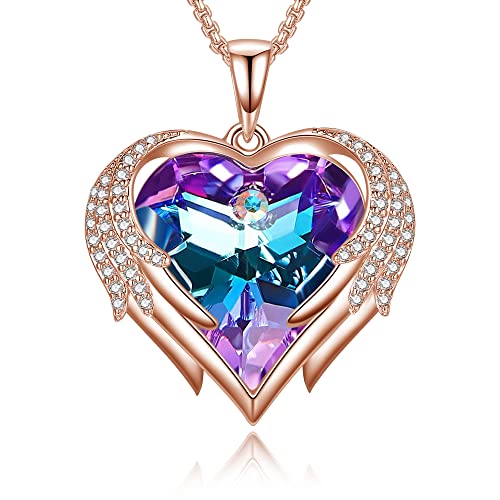 Praelinos Ängelvinge Hjärta Halsband för Kvinnor 18K Vitguldpläterat Silverton Kristall Hänge Halsband 5A Kubisk Zirkonia Smycken Gåvor för Mamma Flickvän Fru Henne (Lila)