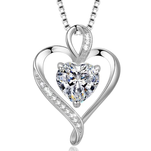 LAVUMO Halsband för Dam Sterling Silver Hjärta Hänge Halsband Rose Guld Cubic Zirconia Smycken Presenter till Flickvän Fru Mamma Hennes Födelsedag Jubileum Jul Mors Dag (Silver-04-april)