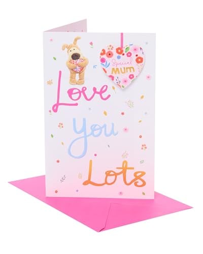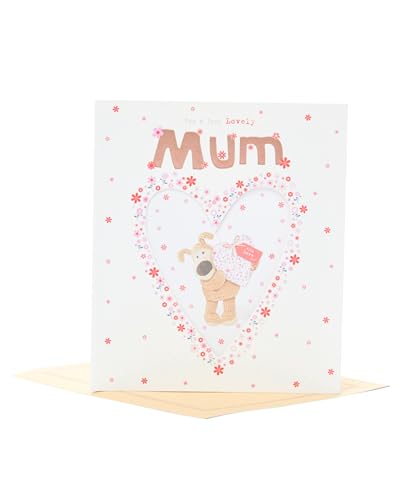 Boofle Födelsedagskort för mamma med kuvert - söt design med bröstkorg med mönstrat hjärta