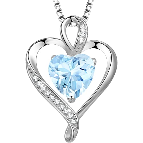 LAVUMO Halsband för Dam Sterling Silver Hjärta Hänge Halsband Rose Guld Cubic Zirconia Smycken Presenter till Flickvän Fru Mamma Hennes Födelsedag Jubileum Jul Mors Dag (Silver-03-mars)