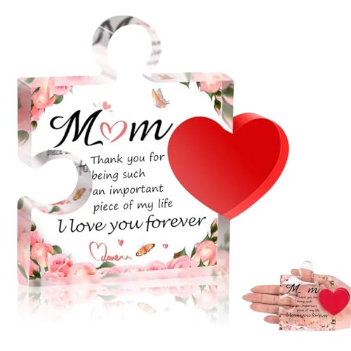 CharmBurst Hjärtformad akrylplatta med pussel och rött hjärta, bordsdekoration, speciell present till mamma, morsdagspresent, bästa mamma i världen