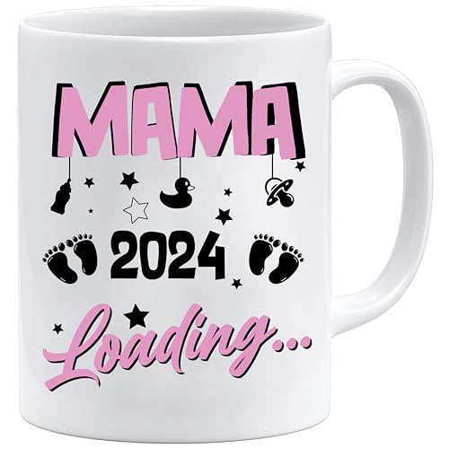 Kopp med slogan | Mama Loading 2024 | Bästa mamma-presentkoppen | Kaffekopp för mamma | Present till födelsedag, påsk, jul (vit)