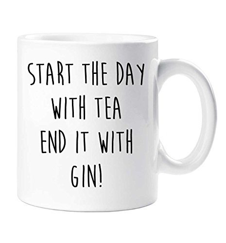 60 Second Makeover Start The Day with Tea End It med gin mugg kopp rolig nyhet gåva vän mamma