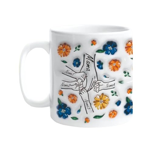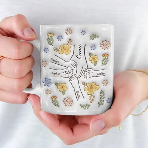 Mormor kopp personlig med barnbarn, personlig mormor, mamma och barnbarn blommor hand i hand kopp – personliga presenter till mamma och mormor, kaffekopp-mamma, mors dag gåva (#01–445 ml)
