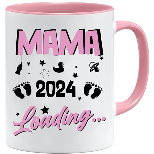 Kopp med slogan | Mama Loading 2024 | Bästa mamma-presentkoppen | Kaffekopp för mamma | Present till födelsedag, påsk, jul (rosa)