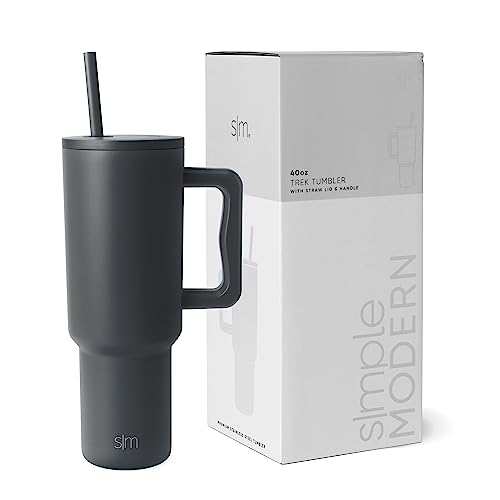 Simple Modern Tumlare med handtag och sugrörslock | Återanvändbar isolerad resemugg i rostfritt stål vattenflaska kopp | gåvor för män, kvinnor, mamma, pappa | Trek Collection | 4 oz | grafit