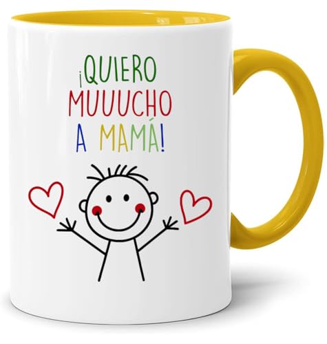 Färgglad kopp för mamma med spanska ordspråk ¡Quiero muuucho a Mamá! | Kärleksfull present från barn på mors dag eller födelsedag