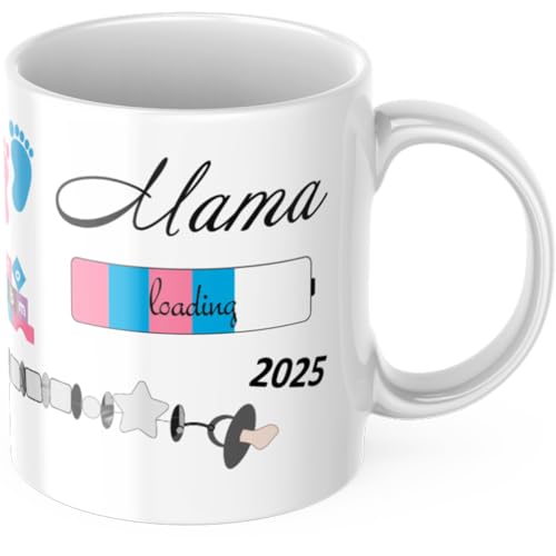 geschenke-fabrik.de – kopp med slogan – Mama loading 2025 – presenter till blivande mödrar/present till gravida kvinnor – förmedla graviditet idéer – baby loading – kopp mamma 2025