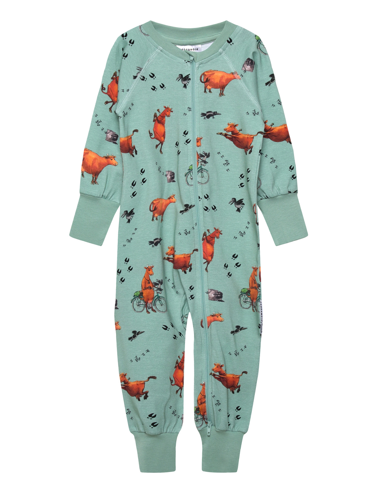 Geggamoja Mamma Mu Two Way Zip Pyjamas - Green - 62/68
