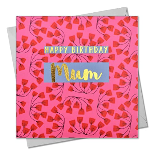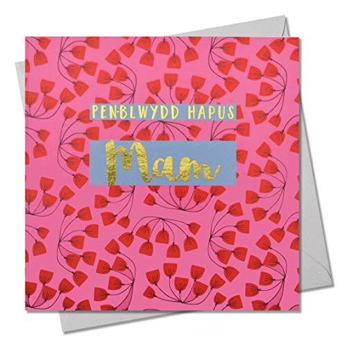 Welsh Happy Birthday gratulationskort mamma, rosa blommor, gratulationskort med text folie i glänsande guld, penna-blwydd Hapus mamma