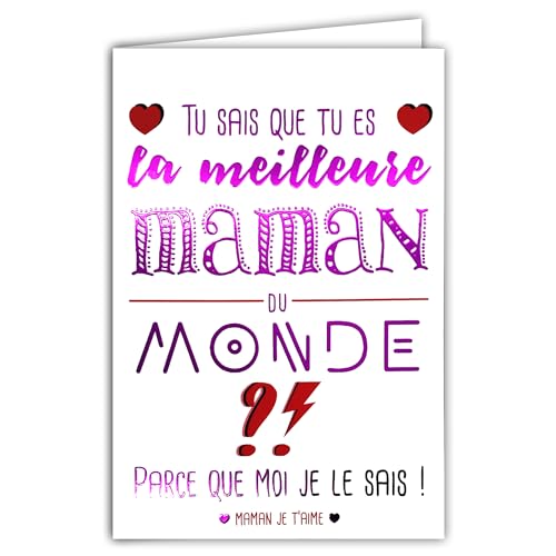 65-1418 Världens bästa mamma-kort "I love you Shining Fuchsia Pink Text" med kuvert 12 x 17,5 cm för mors dag eller födelsedag hjärtan - kreativ utgåva tryck tillverkad i Frankrike