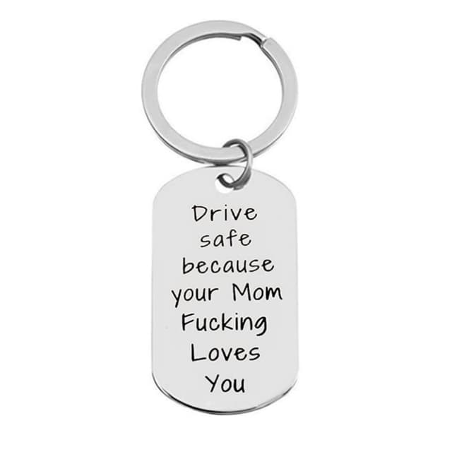Nyckelring i Rostfritt Stål med Text Kör säkert för din mamma älskar d