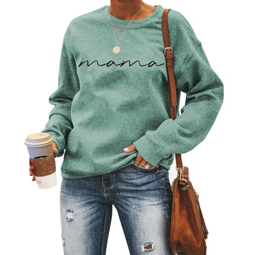 MLZHAN Mamma bokstavstryck kvinnor mors dag tröjor rund hals långärmad vardaglig klassisk tröja toppar mode rock, ljusgrön, M