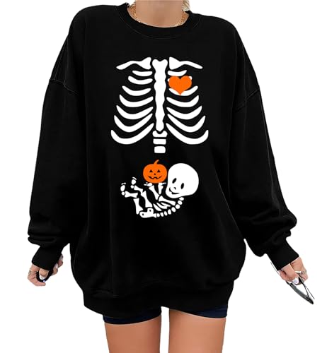 Halloween graviditet sweatshirt skelett mamma graviditet tillkännagivande halloween graviditet tröja, Svart, L