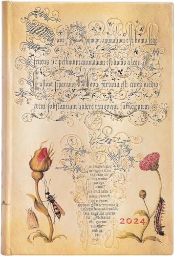 Paperblanks 12 månadskalender 2024 flamländsk ros | Dagöversikt | Mini (95 × 140 mm)