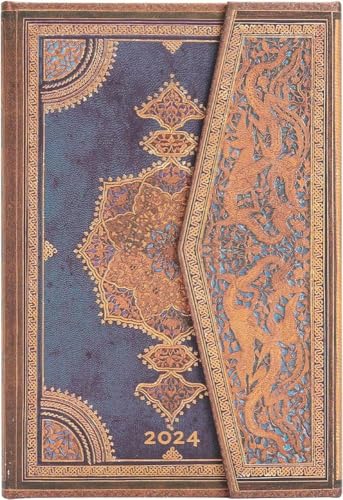 Paperblanks 12 månadskalender 2024 safawidisk Indigo | Horisontell | Mini (100 × 140 mm)
