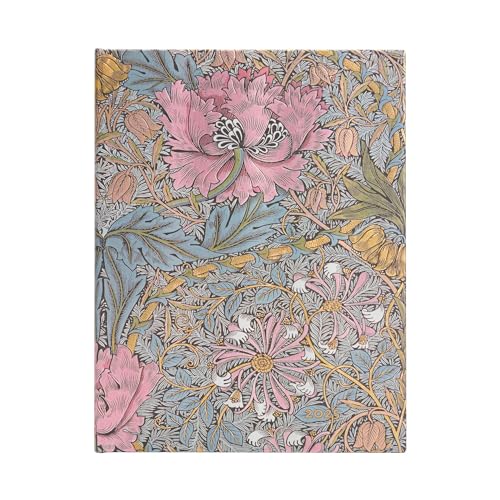Paperblanks 12 månadskalender 2025, Morris häckkörsbär i rosa, Ultra, Verso, elastisk bandstängning