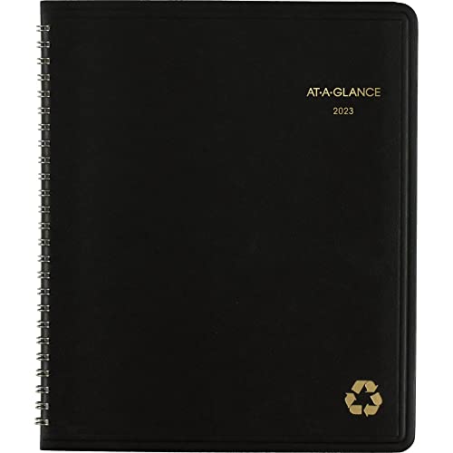 AT-A-GLANCE Månadsplanerare 2023, 7 tum x 8-3/4 tum, medium, spiralbunden, återvunnen, månatliga flikar, svart (70120G05)