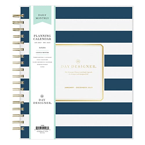 BLUE SKY Designer för Blue Sky 2023 daglig och månadsplanerare, 8 tum x 10 tum, frostat lock, trådbunden, marinblå rand (142098), 20 x 25 cm