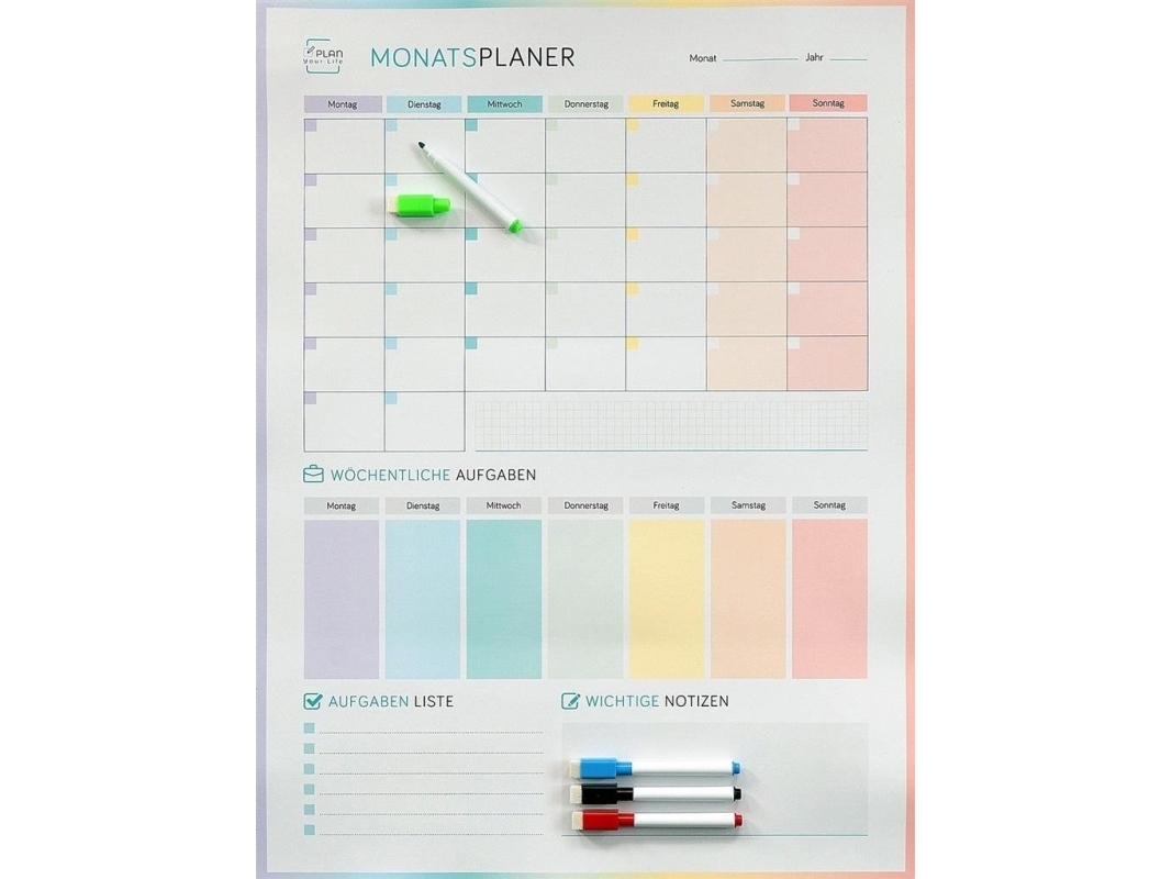 Previs Magnetisk skrivtavla A4 Kylskåp - Magnetisk kalender med Köp-Listan Kylskåp - Iman Kylskåp Kalender och Skiffer för Kök - Magnetisk Månadsplanerare