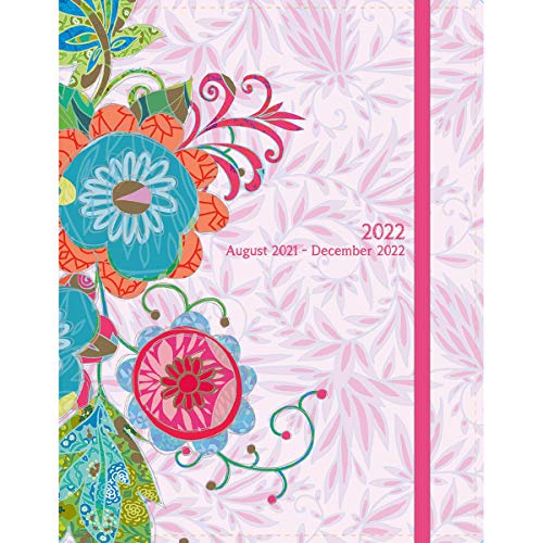 Årlig planerare 2022 – veckovis arrangör – varje dag en sida – medium 14 x 20 cm – Miami-modell – rosa – bladiga blad – bärbar månadsplanerare – Dohe