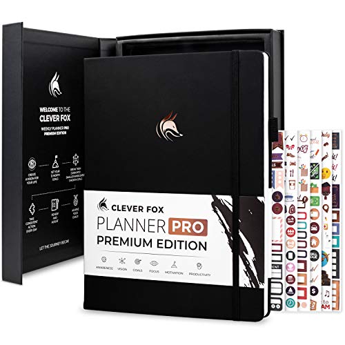 Clever Fox Planner Pro Premium – lyxig vecko- och månadsplanerare med budgetorganiserare för produktivitet och mål, odaterad, A4 (svart)