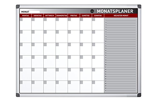 Bi-Office Earth – miljövänlig planeringstabell ”Monthly Planner”, 90 x 60 cm, magnetisk månadsplanerare med aluminiumram, torr torkbar månadskalender