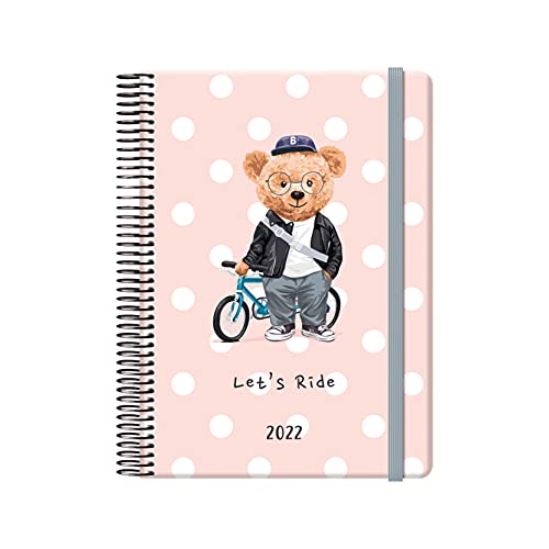 Årlig Agenda Björnar - 2022- Veckovis Arrangör - Varje dag En sida - Medelstorlek 15 x 21 cm - Cykelmodell - Bärbar månadsplanerare - Ringad - Dohe