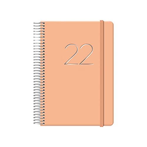 Årlig agenda 2022- Veckovis arrangör - Varje dag En sida - Medium Storlek 12,5 x 18 cm - Gloss Modell - Persikafärg - Bärbar månadsplanerare - Ringad - Dohe