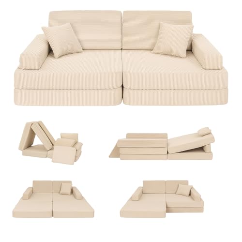 Angelove Barnsoffa - Perfekt för Barnrummet, Bekväm och Stilren Barnmöbel i Velour-Manchester Tyg, Beige