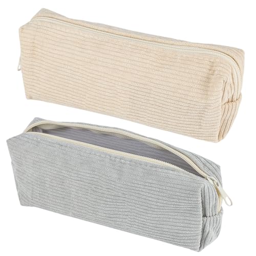 kayqbonke 2 stycken pennfodral manchester tyg, pennfodral med dragkedja, stor lagringskapacitet pennfodral för skolmaterial, skolpennfodral för skolkontor, Beige och ljusgrå, Pennfodral med dragkedja