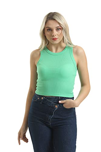Bonateks, Basic Crop, halterneck, slits, 30/1 kammat single jersey-tyg, manchester, grön, storlek: M, Grön, M Kort