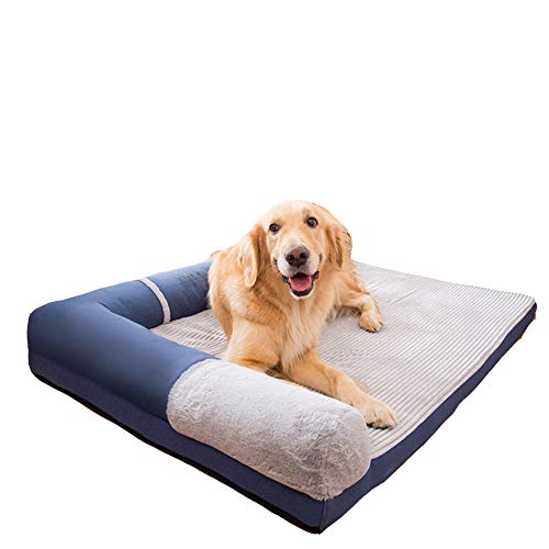 HONGBI Vattentät ortopedisk hundbädd i minnesskum, stor, tvättbart Oxford-tyg, husdjursmadrass, schäslong, soffa med avtagbart skydd och halkfri botten för medelstor hund, marinblå, manchester, XL