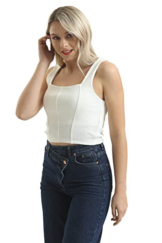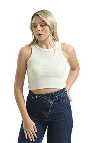 Bonateks, Basic Crop, halterneck, slits, 30/1 kammat single jersey-tyg, manchester, vit, storlek: M, Vit, M Kort