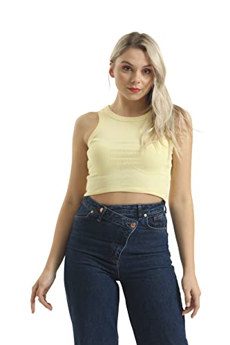 Bonateks, Basic Crop, halterneck, slits, 30/1 kammat single jersey-tyg, manchester, gul, storlek: S, GUL, S Kort