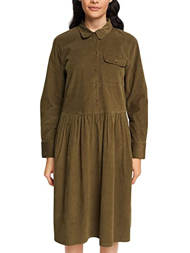 ESPRIT manchesterklänning med fickor, Mörk kaki, 32 SE