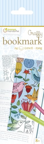 Avenue Mandarine - Ref GY038O - Graffy Bookmark Coloring Pad - Mandala & Flower Designs - Spiralbound anteckningsbok, 14,5 cm x 6 cm, 24 bokmärken att färga, 12 mönster, 250 gsm papper