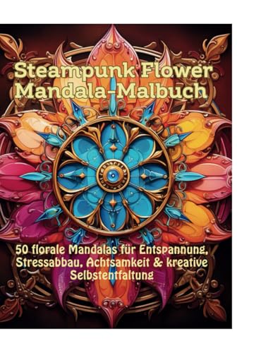 Steampunk Flower Mandala-Malbuch: 50 florale Mandalas für Entspannung, Stressabbau, Achtsamkeit & kreative Selbstentfaltung