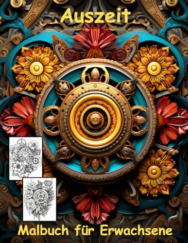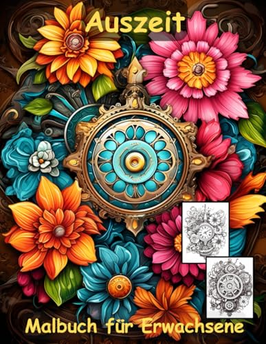 AUSZEIT Steampunk Blumen Mandala -Malbuch für Erwachsene -Entspannung und Stressabbau -ein magisches Ausmalbuch mit 50 ausgewählten Motiven: ... -Mandala Flower Steampunk Blumen