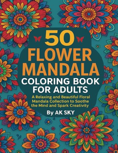 50 Flower Mandala Coloring Book for Adults: A Relaxing Floral Journey for Adults, Seniors, and Teens 13+ | Perfect for Mindfulness and Stress Relief | 8.5x11 Inches