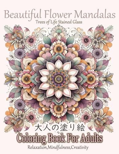 Beautiful Flower Mandala Tree of Life Stained Glass 大人の塗り絵: Relaxation,Mindfulness,Creativity 日本語版