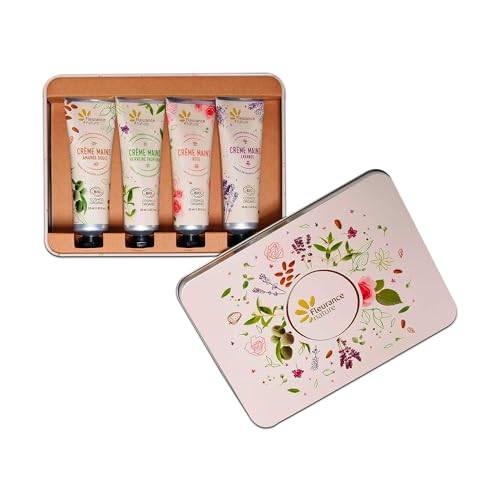 Fleurance Nature - Omedelbar mjukhet hand krämer set certifierad ekologisk Cosmos Ecocert- 4x 30 ml - lavendelrosa-söt mandel - tropisk verbena - presentförpackning för kvinnor - skönhetssalong