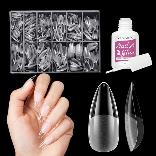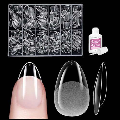 Almond Medium nageltips för gelnaglar, Venares 500 stycken akrylkonstgjorda naglar, korta 12 storlekar, full cover nail tips, mandel, medellängd med låda – S