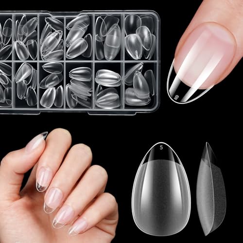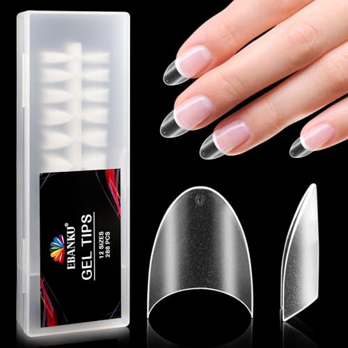 EBANKU 288PCS Korta mandel Nagelspetsar med fransk kant, Halvtäckande Kort Oval Klar Matt Akryl Nagelspetsar Falska naglar för nagelförlängning